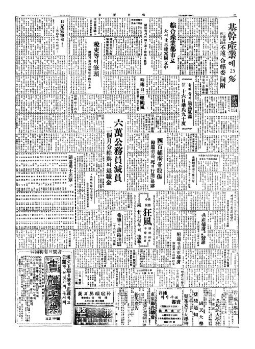 - 日本本州(일본본주) 暴雨(포우) 死亡乃至(사망내지) 行方不明者(행방부명자)가無慮(무려) 四百名(사백명)