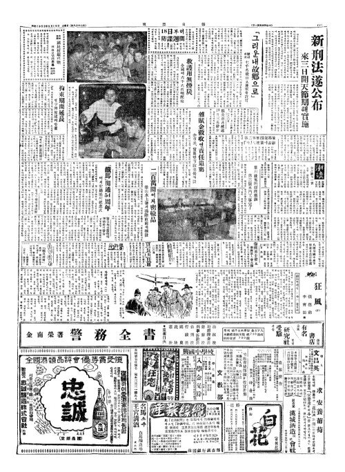 - 新(신)『刑法(형법)』遂公布(수공포) 來三日開天節期(내삼일개천절기)해實施(실시)