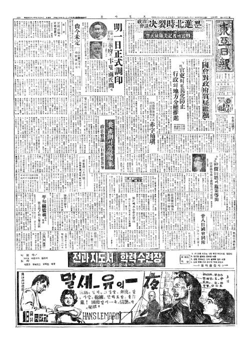 - 本報廣吿下命(본보광고하명)은 電(전)②三三三一(삼삼삼일)로