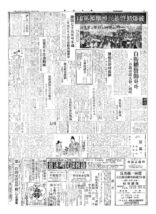 - 印軍暴擧(인군폭거)에民族憤怒爆發(민족분노폭발)