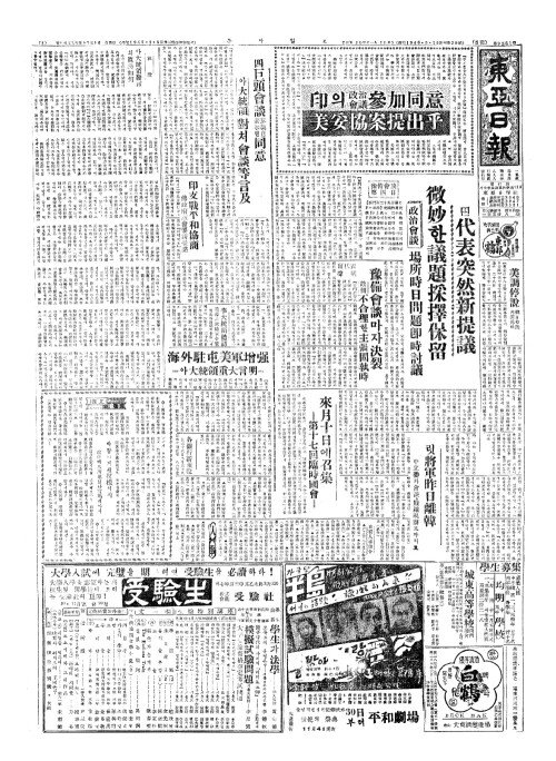 - 印(인)의政治會議參加同意(정치회의삼가동의) 美妥協案提出乎(미타협안제출호)