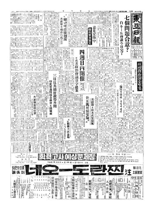 - 美援助(미원조)로日再武裝提案(일재무장제안) 廿五萬(입오만)의保安隊創設(보안대창설)