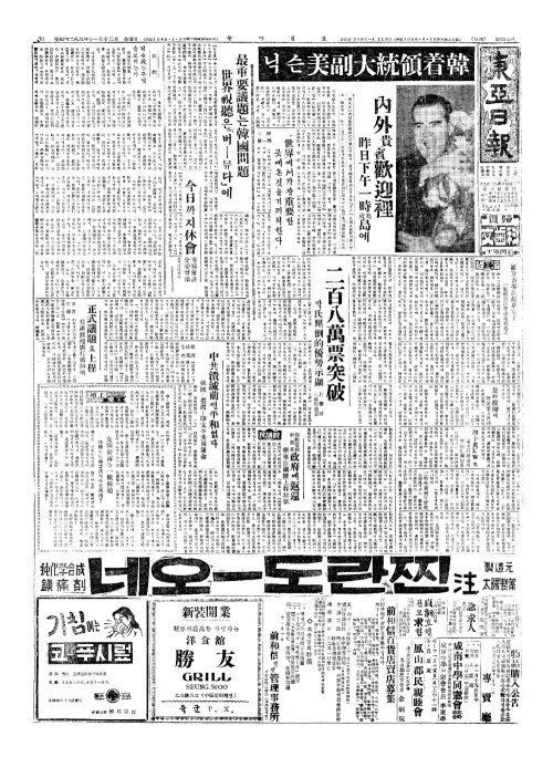 - 最重要議題(최중요의제)는韓國問題(한국문제) 世界視聽(세계시청)은『버—뮤다』에