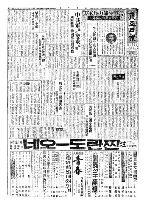 - 本報釜山購讀廣吿申請(본보부산구두광고신청)은電五二六四釜山分室(전오이륙사부산분실)로