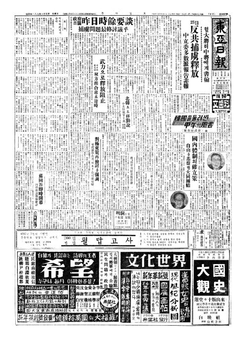 - 헐大將(대장)티中將(중장)에게書翰(서한) 23日反共捕虜釋放(일반공포노석방)