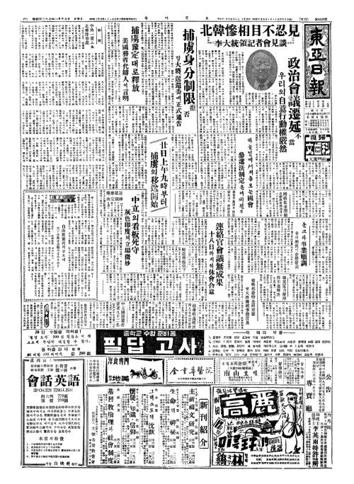 - 捕虜豫定(포노예정)대로釋放(석방) 美國務省代辯人(미국무성대변인)이言明(언명)
