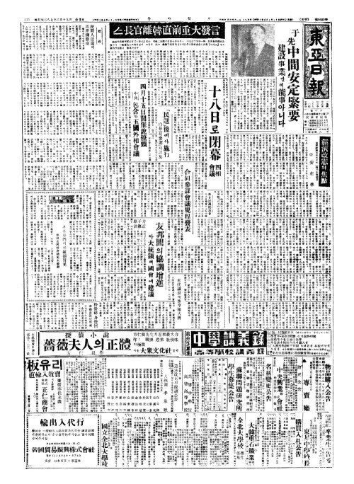 - 四月十五日開催說擡頭(사월십오일개최설대두) 中共(중공) 包含(포함)한五國外相會議(오국외상회의)