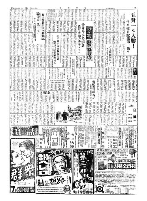 - 大邱支社(대구지사) 電話(전화)는 二(이)○七二番(칠이번) 大邱市(대구시) 購讀廣吿申請(구독광고신청)은 右電話(우전화)로