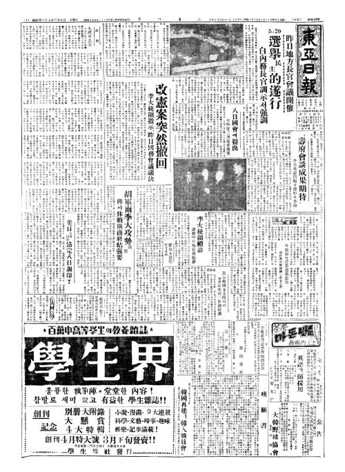 - 昨日地方長官會議開催(작일지방장관회의개최) 5·20選擧民主的遂行(선거민주적수행)