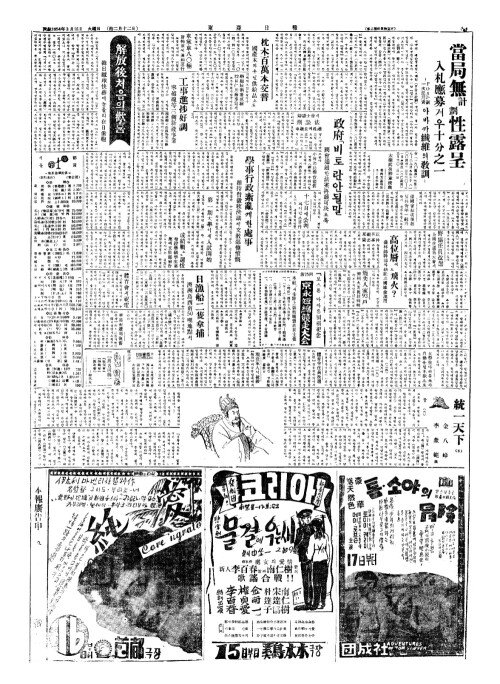 - 政府(정부)『비토』란안될말 國會通過(국회통과)한法案再議可決(법안재의가결)토록