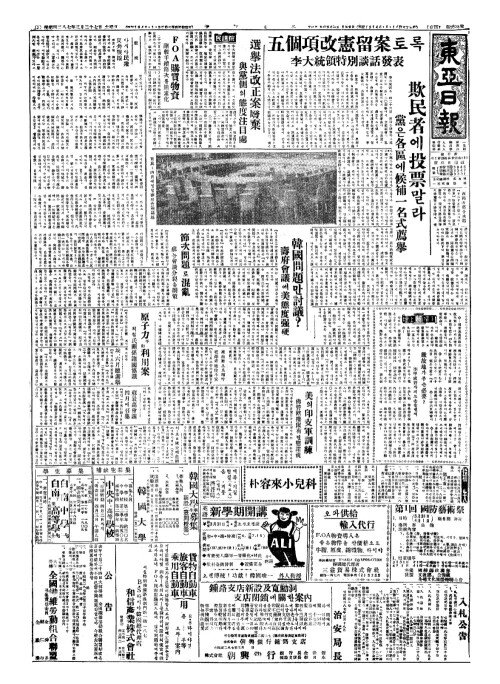 - 五個項改憲留案(오개항개헌유안)토록 李大統領特別談話發表(리대통영특별담화발표)