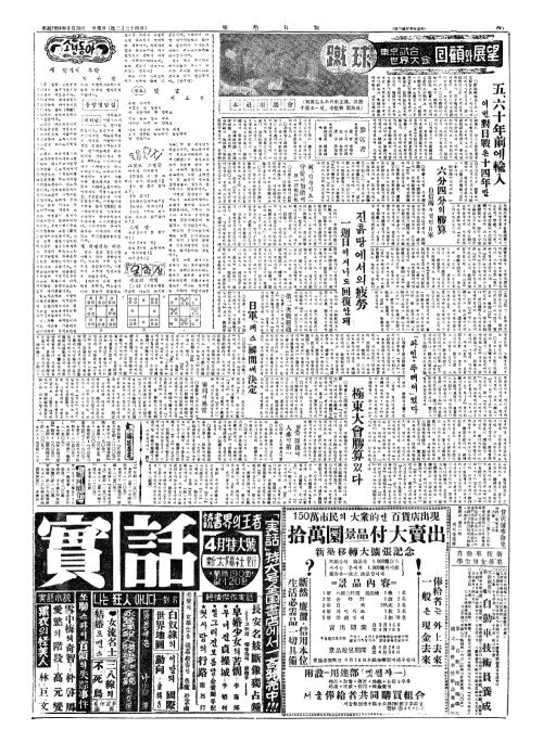 - 今日本紙四面(금일본지사면)