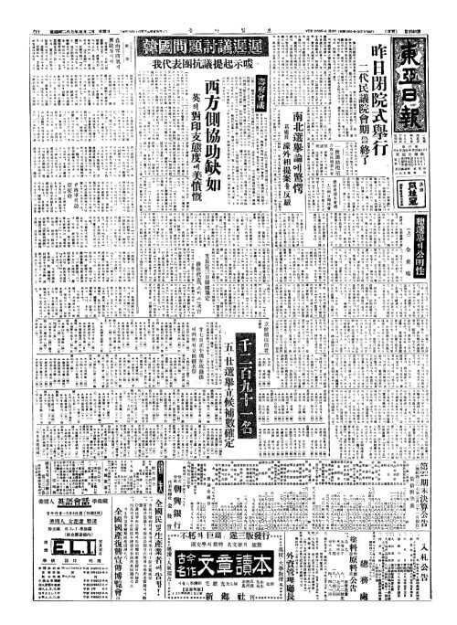 - 昨日閉院式擧行(작일폐원식거행) 二代民議院會期(이대민의원회기)를終了(종요)