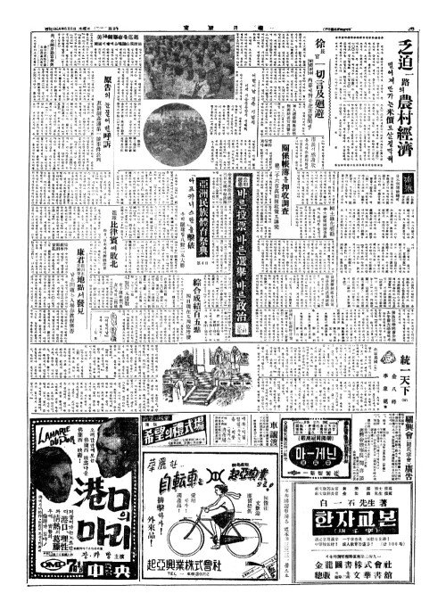 - 一聯高位層會談(일련고위층회담) 덜長官歸國後動向注目(장관귀국후동향주목)
