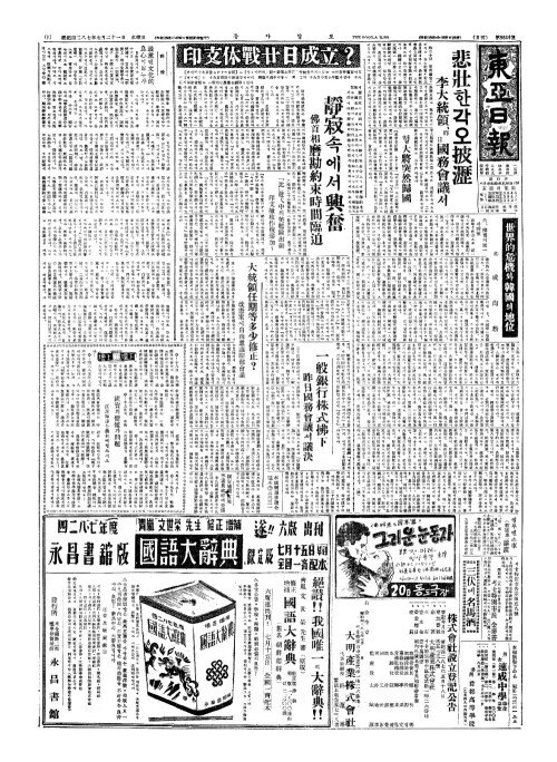 - 悲壯(비장)한각오披瀝(피력) 李大統領(이대통영)、昨日國務會議(작일국무회의)서