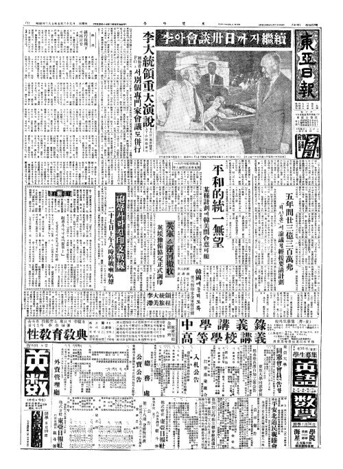 - 日(일)、美等(미등)에復線電話(복선전화) 李遞信部長官推進言明(리체신부장관추진언명)