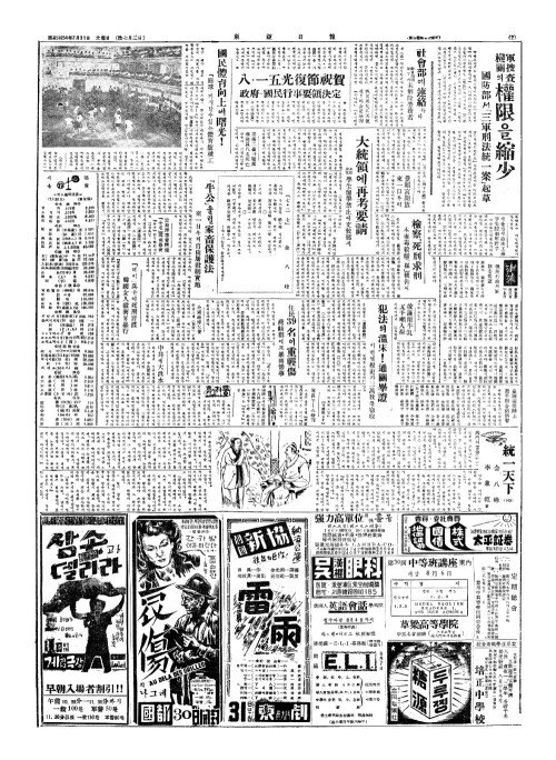 - 八(팔)·一五光復節祝賀(일오광복절축하) 政府(정부)·國民行事要領決定(국민행사요영결정)