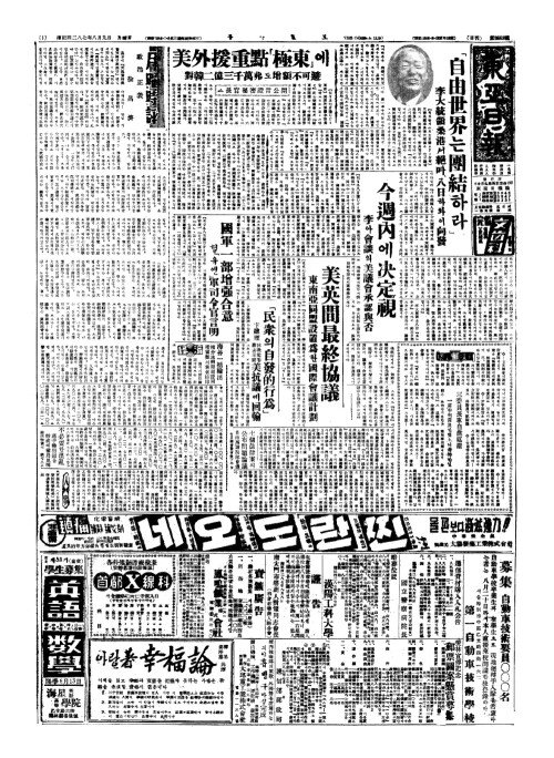 - 「自由世界(자유세계)는團結(단결)하라」李大統領桑港(이대통령상항)서絕叫(절규)、八日(팔일)하와이向發(향발)
