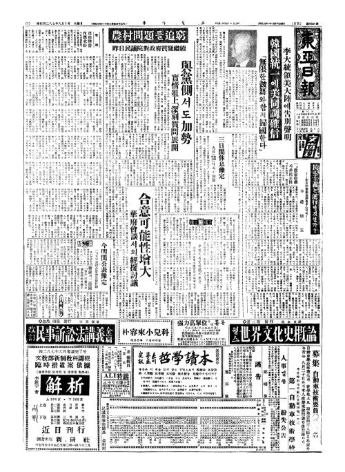 - 合意可能性增大(합의가능성증대) 華府會談(화부회담)서의經援討議(경원토의)