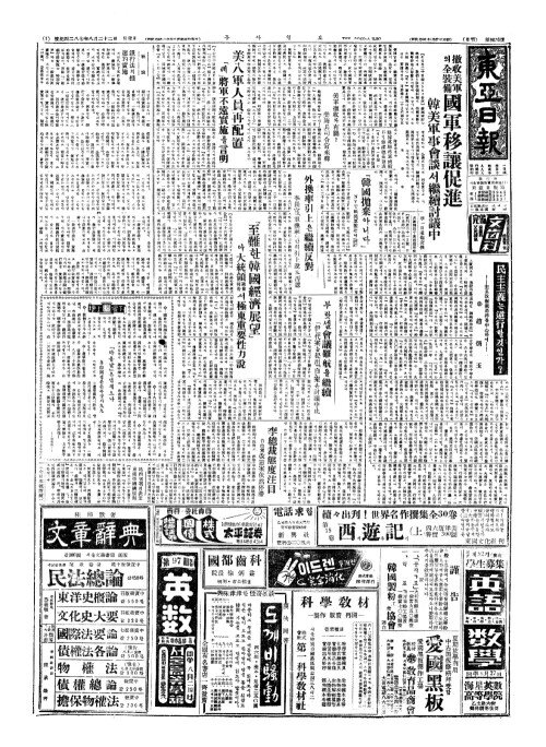 - 美八軍人員再配置(미팔군인원재배치) 『테』將軍不遠實施(장군부원실시)를言明(언명)
