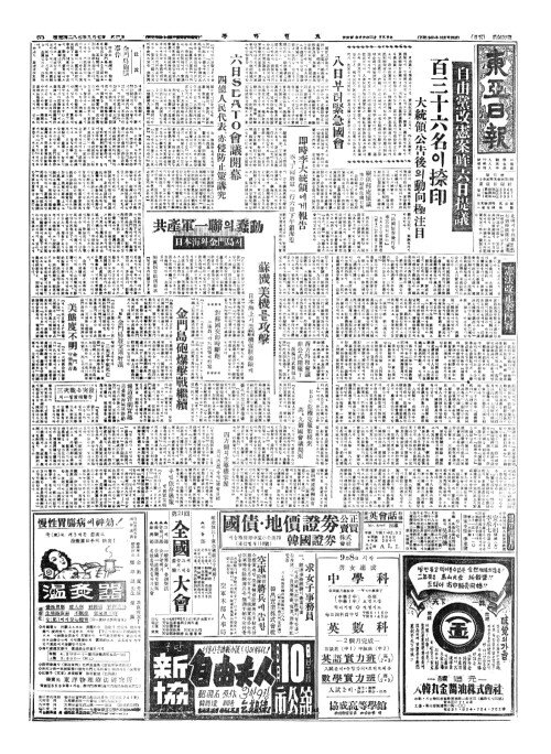 - 自由黨改憲案昨六日提議(자유당개헌안작륙일제의)