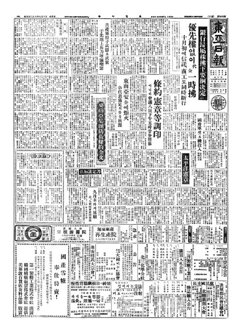 - 條約(조약)、憲章等調印(헌장등조인) 마니라會議八日下午五時廿分閉幕(회의팔일하오오시입분폐막)