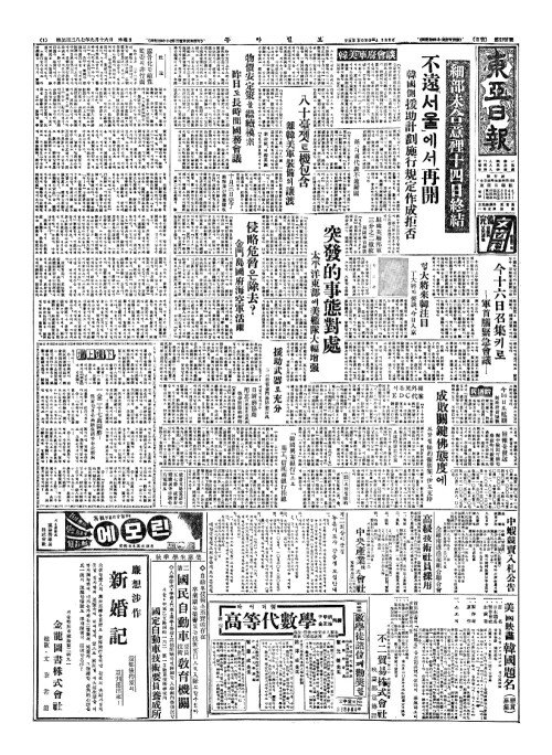 - 今十六日召集(금십륙일소집)키로……軍首腦緊急會議(군수뇌긴급회의)……