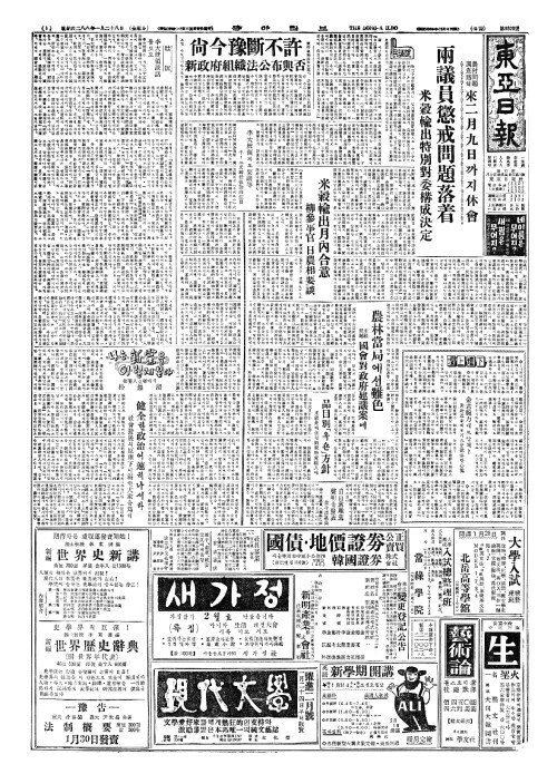 - 尙今豫斷不許(상금예단부허) 新政府組織法公布與否(신정부조직법공포여부)