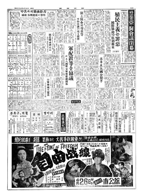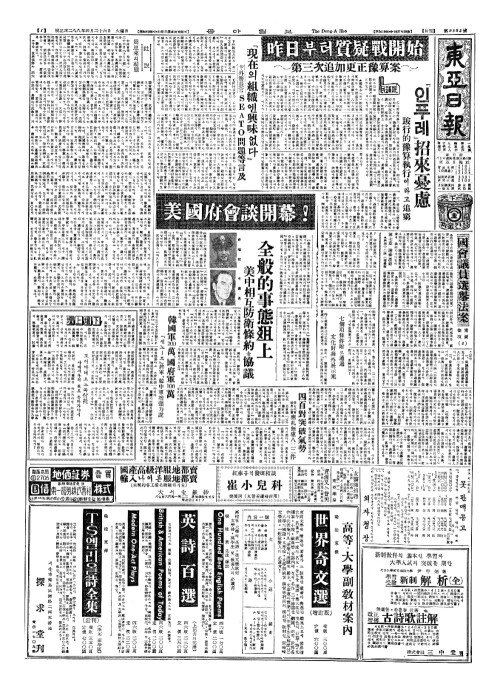 - 中共(중공)과의協商拒否(협상거부) 國府(국부)、休戰提案(휴전제안)에聲明(성명)