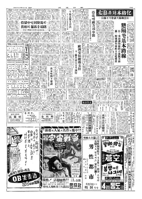- 美(미)、中共合席推進(중공합석추진) 印(인)、臺灣休戰爲(대만휴전위)해