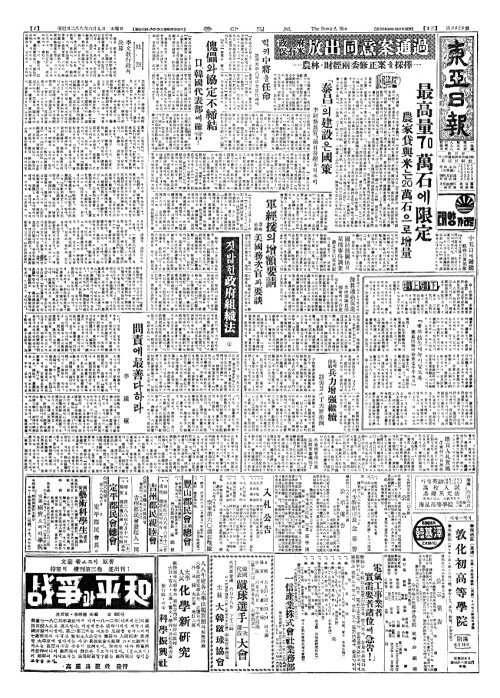 - 肥料(비요)의自由販賣制(자유판매제) 『케이켁』서農林部(농림부)에建議(건의)