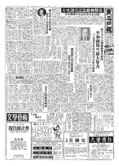 - 十周年(십주년)맞는『유·엔』(3) 第六次總會(제륙차총회) 一九五一年(일구오일연)