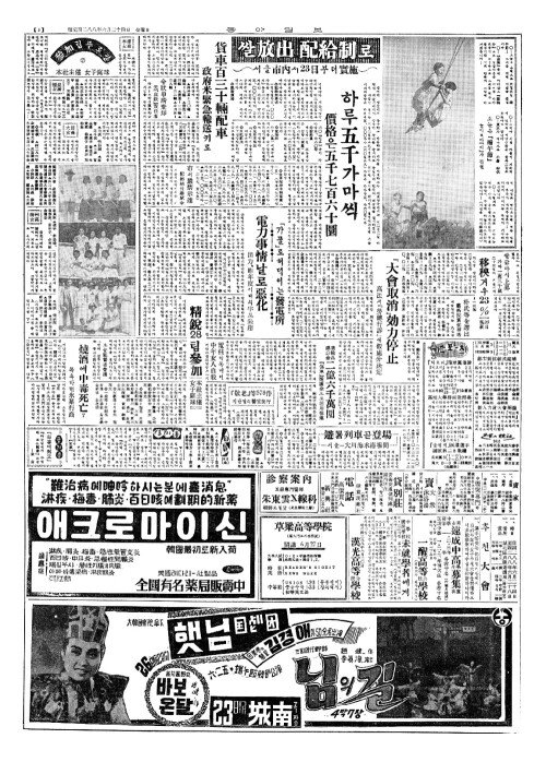 - 쌀放出(방출) 配給制(배급제)로 서울市內(시내)서23日(일)부터實施(실시)