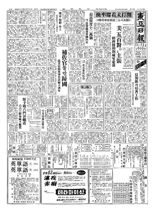 - 美(미)、中共壽府協商迫頭(중공수부협상박두) 『萬國(만국)의殿堂(전당)』서開催(개최)