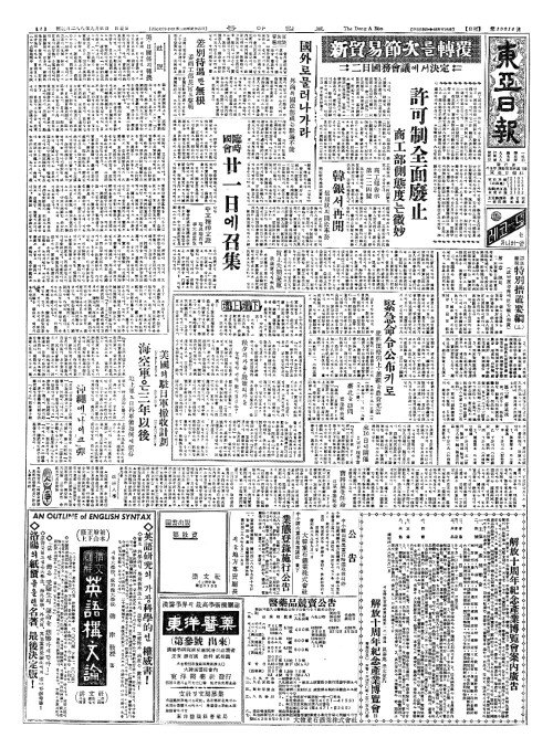 - 臨時國會(임시국회) 廿一日(입일일)에召集(소집)