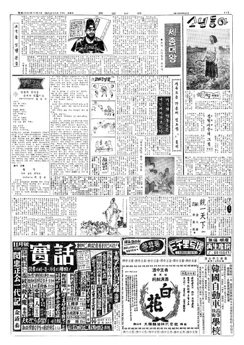 - 다음의連載小說(련재소설) 荊冠(형관) 朴榮濬作(박영준작) 李靑田畵(이청전화)