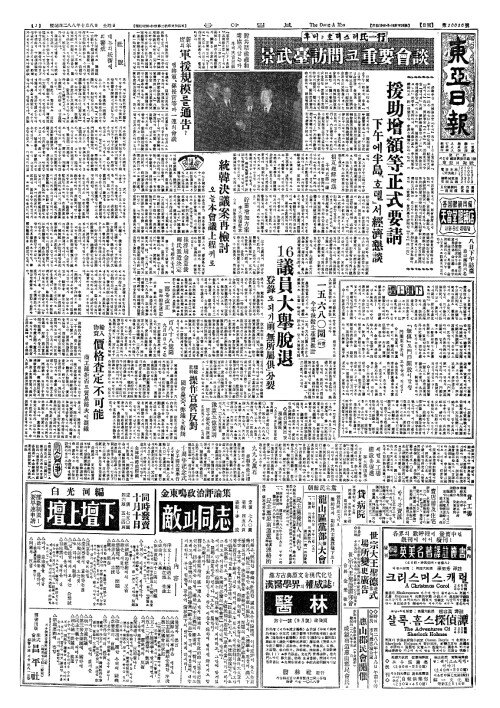 - 어제本會議(본회의)에報吿(보고) 大邱每日事件國會側調査內容(대구매일사건국회측조사내용)