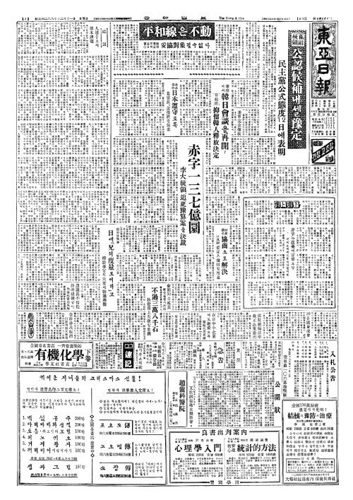 - 華府(화부)에서 韓日會談(한일회담)을再開(재개)? 日政府(일정부) 抑留韓人釋放決定(억류한인석방결정)