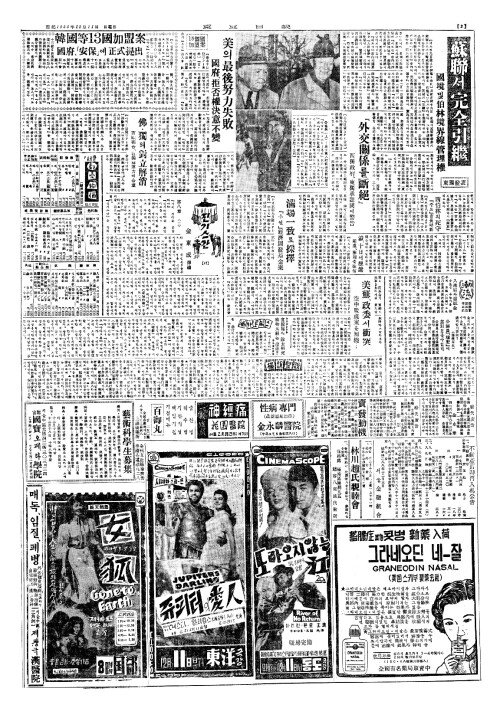 - 美(미)의最後努力失敗(최후노력실패) 國府(국부)、拒否權決意不變(거부권결의부변)