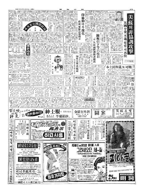 - 關稅引下等六項目(관세인하등륙항목) 『아』大統領經濟敎書提出(대통영경제교서제출)