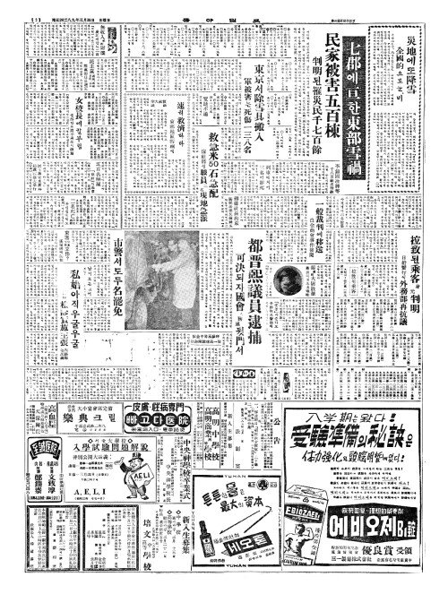 - 東京(동경)서除雪具搬入(제설구반입) 軍被害(군피해)는死傷一三八名(사상일삼팔명)
