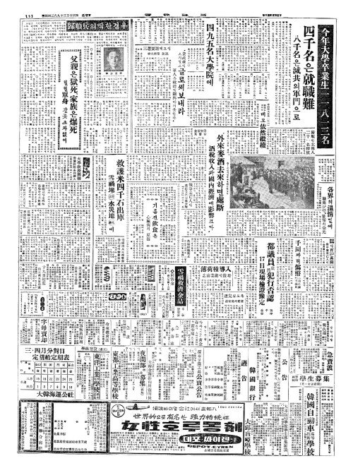- 戰爭未亡人(전쟁미망인)에 裁縫(재봉)틀四百臺寄贈(사백대기증)