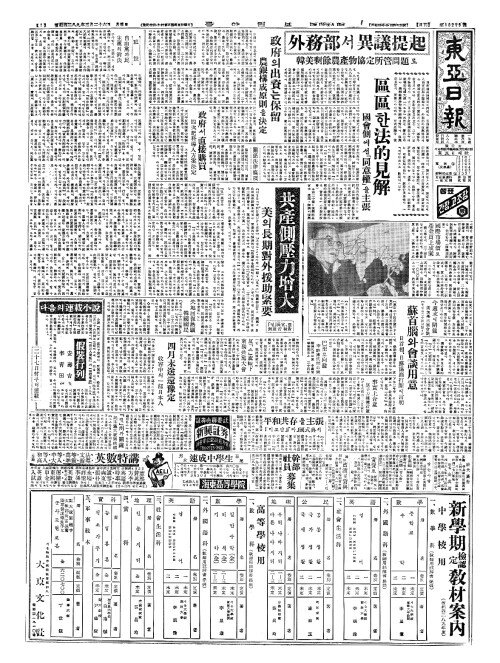 - 共產側壓力增大(공산측압력증대) 『덜』長官(장관)、亞洲旅行報吿(아주려항보고)