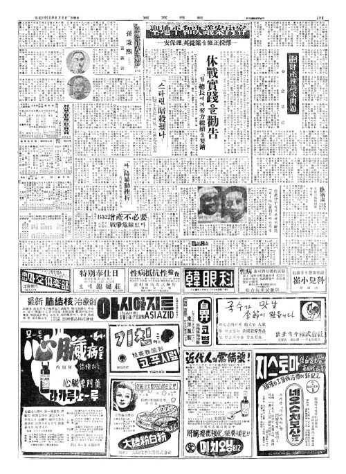 - B52增產不必要(증산부필요) 스탓센氏警吿(씨경고) 戰爭危險(전쟁위험)있다