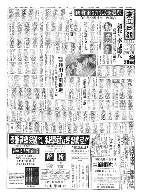 - 國會正副議長(국회정부의장)을選擧(선거)