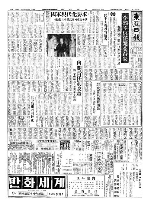 - 自由黨(자유당)서激論(격논) 李長官不信圍繞(이장관부신위요)