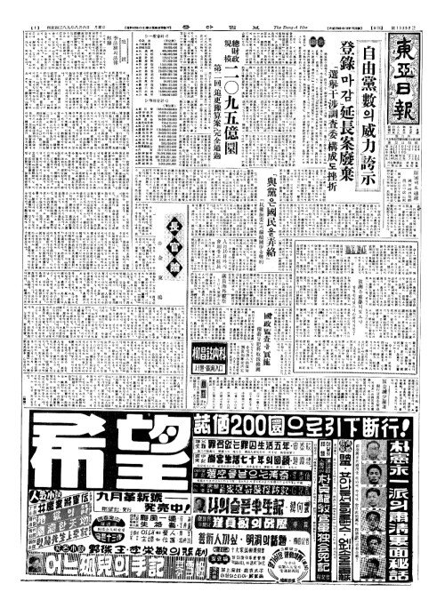 - 自由黨(자유당)『數(삭)의威力(위역)』誇示(과시)