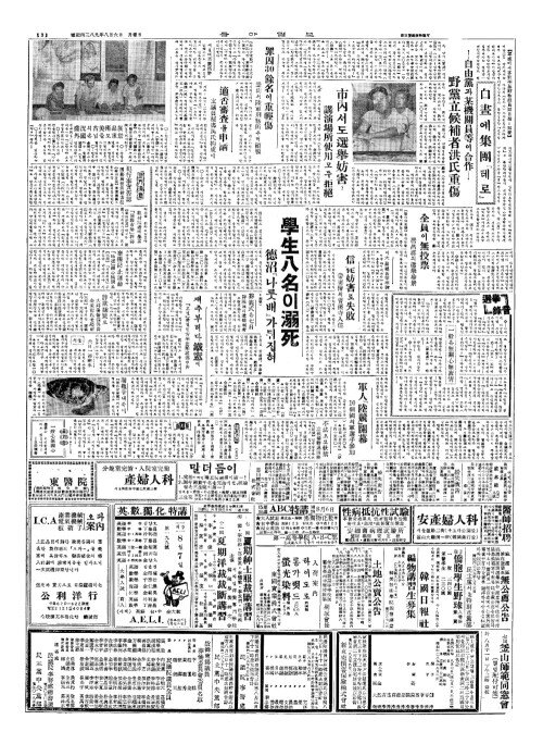 - 學生八名(학생팔명)이溺死(닉사)