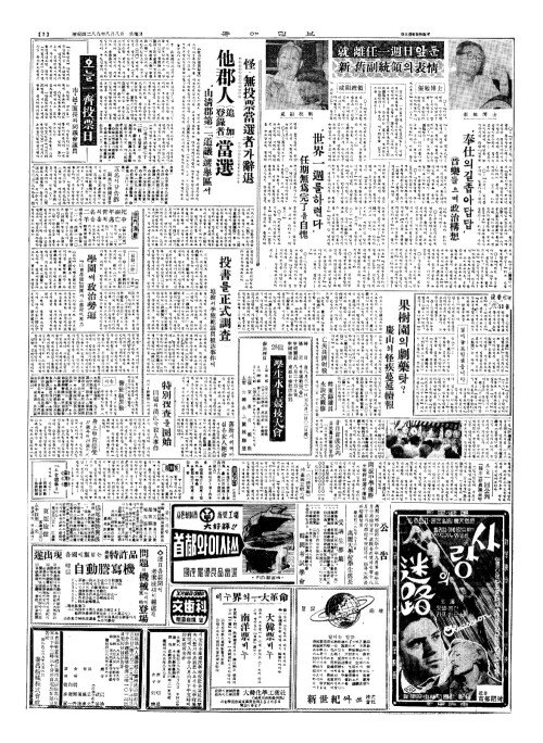 - 美兩政黨團結(미량정당단결) 中共(중공)유엔加入阻止(가입조지)