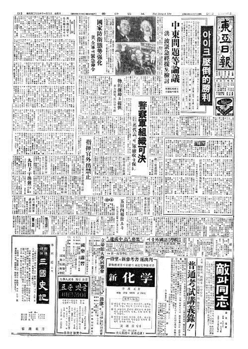 석간 1면 종합